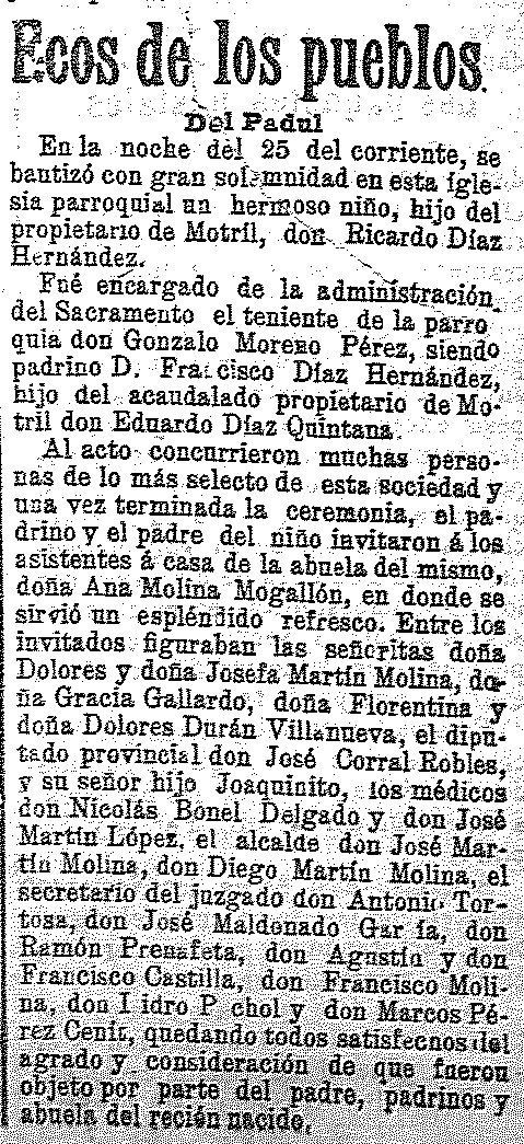 29 de marzo de 1905. Bautizo del hijo de propietario en el Padul