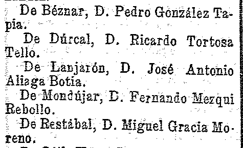 29 de marzo de 1905. Sacristanes de Béznar, Dúrcal, Lanjarón, Mondújar y
