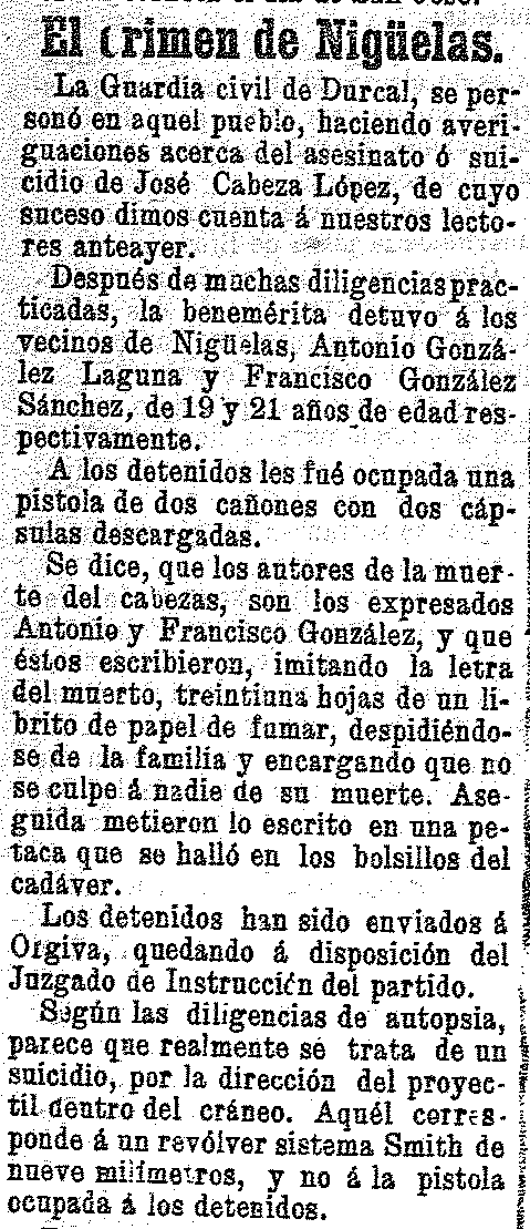 28 de marzo de 1905. Vecino de Nigüelas aparece muerto