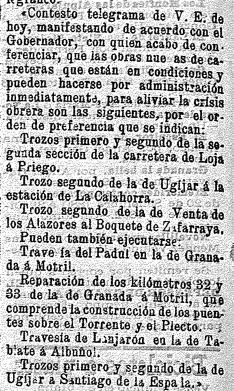 30 de marzo de 1905. Trabajos de carreteras que se harán para mitigar el paro: