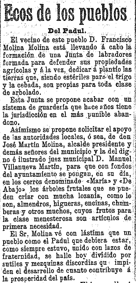 4 de marzo de 1905. Se forma una junta de labradores en Padul
