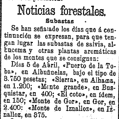 8 de marzo de 1905. Subasta de plantas aromáticas en
