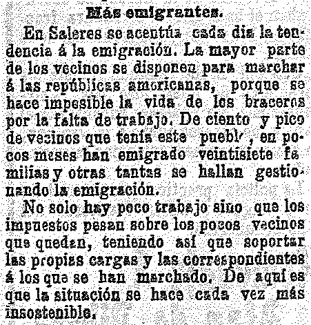 11 de diciembre de 1906. Los vecinos de Saleres emigran a las