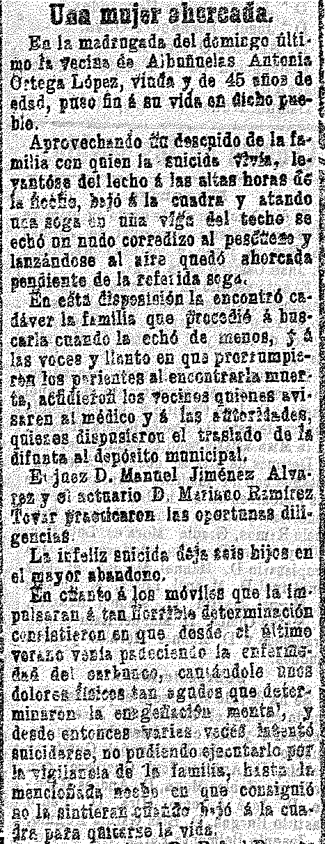 13 de diciembre de 1906. Una vecina de Albuñuelas se ahorca