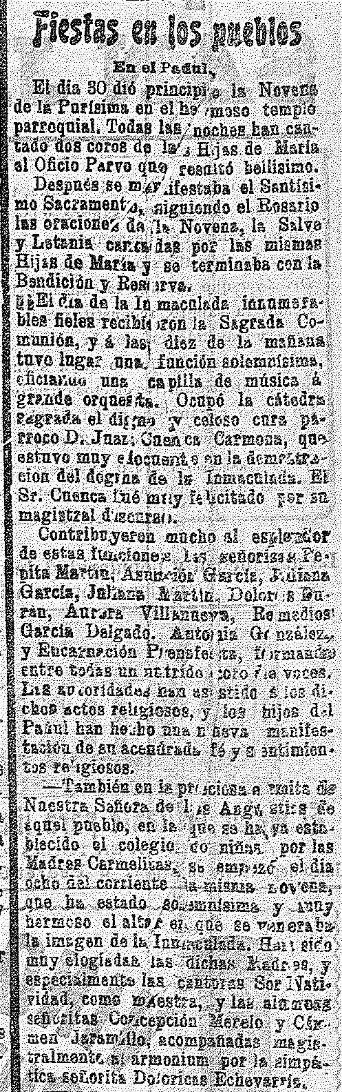 20 de diciembre de 1906. Novena de la Purísima en el Padul
