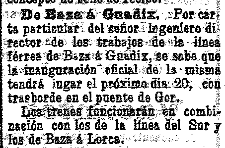 18 de julio de 1906. Se abre la línea de tren Baza Guadix