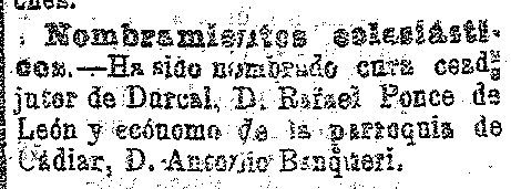 22 de julio de 1906. Nombrado cura coadjutor de Dúrcal a D.