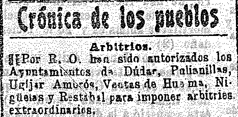 5 de julio de 1906. Arbitrios de Nigüelas y Restábal