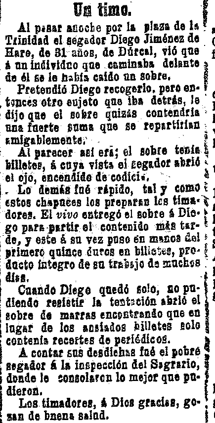 13 de julio de 1907. Un timo a un vecino de Dúrcal