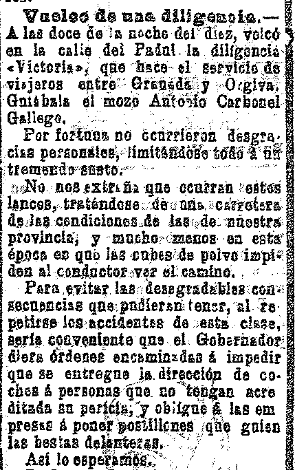 13 de julio de 1907. Se vuelca la diligencia "Victoria" en
