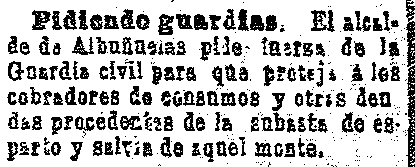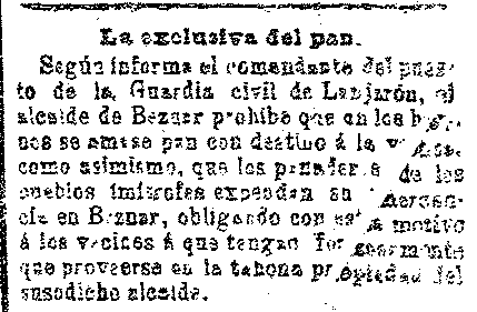 26 de julio de 1907. El alcalde de Béznar pide exclusividad