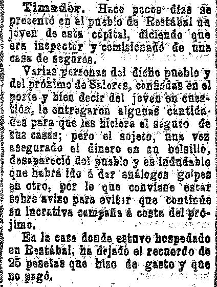 30 de julio de 1907. Un timador de seguros en Restábal y