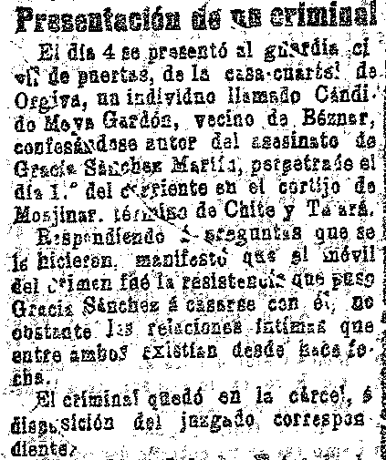 7 de julio de 1907. Detenido el criminal de Chite, era un