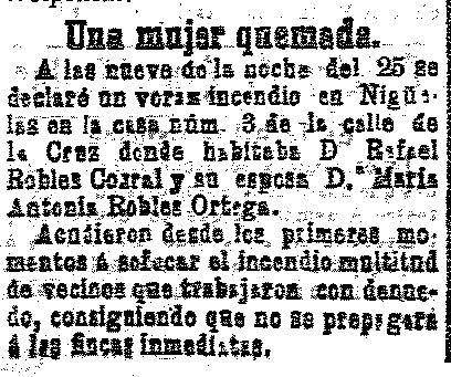 29 de septiembre de 1907. Una mujer de Nigüelas quemada en un