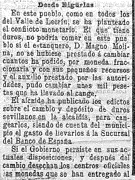 15 de agosto de 1908. Problema en Nigüelas y el Valle con los