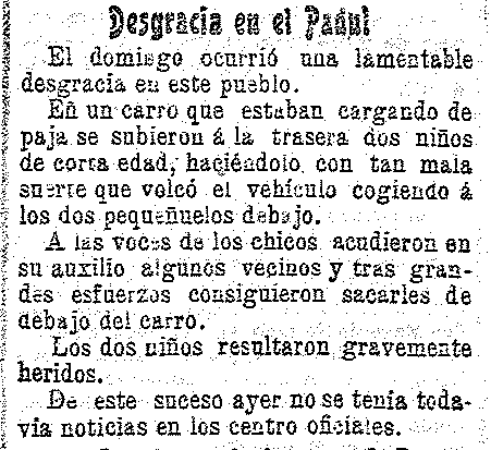 18 de agosto de 1908. Se le vuelca un carro de paja a dos