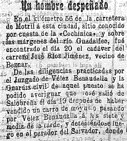 23 de agosto de 1908. Despeñada en la carretera de Motril un