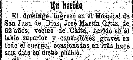 25 de agosto de 1908. Herido por una riña un vecino de Chite