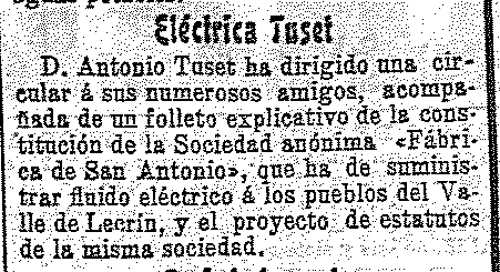 2 de agosto de 1908. La eléctrica Tuset envía un folleto