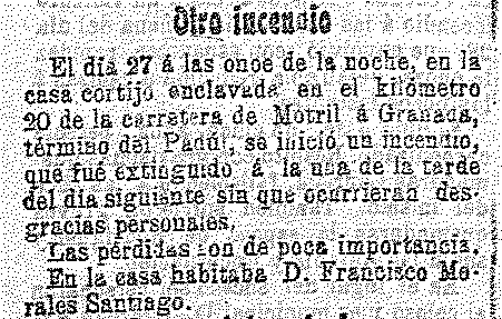 30 de agosto de 1908. Incendio en un cortijo del Padul
