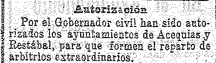 10 de julio de 1908. Arbitrios de Acequias