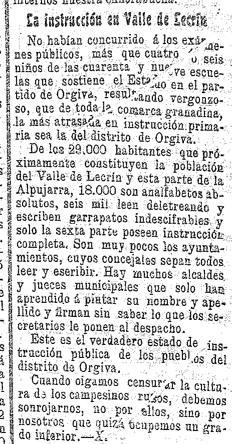 1 de julio de 1908. La instrucción en el Valle de Lecrín: de
