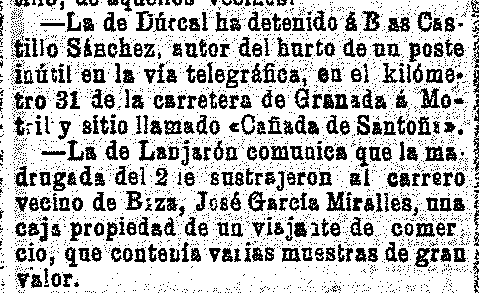 10 de diciembre de 1909. Detención en Dúrcal y robo en