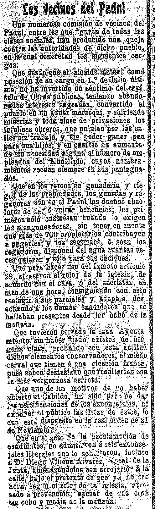 23 de diciembre de 1909. Desde Padul, queja ante las