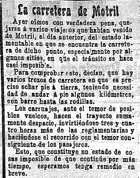 Motril. De Granada a Padul 1 hora veinte minutos, carretera en mal estado