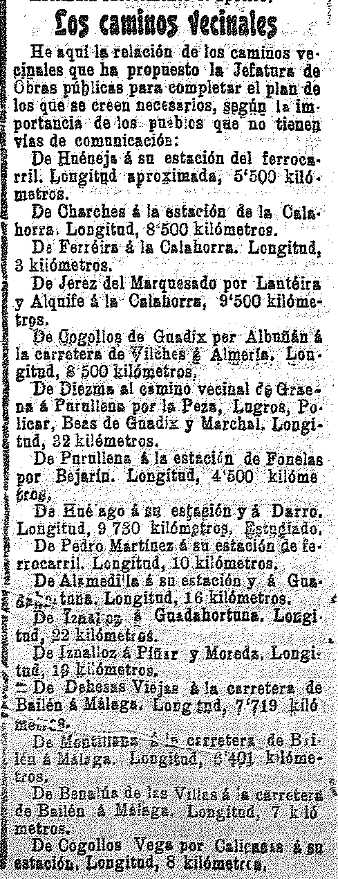 23 de diciembre de 1909. Caminos vecinales de la provincia: