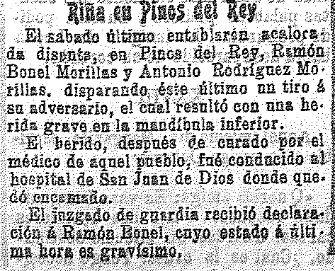 30 de diciembre de 1909. Riña en Pinos del Rey