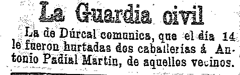 17 de junio de 1909. Hurtadas unas caballerías en Dúrcal