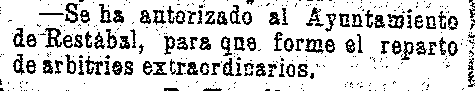 17 de junio de 1909. Reparto de arbitrios en Restábal