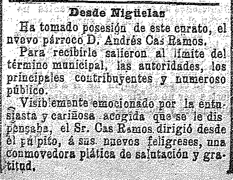 2 de junio de 1909. Toma de posición del cura D. Andrés Cas