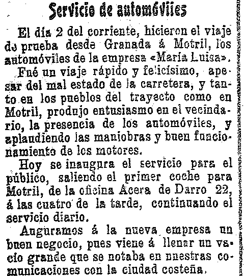 5 de junio de 1909. Automóviles de la empresa María Luisa