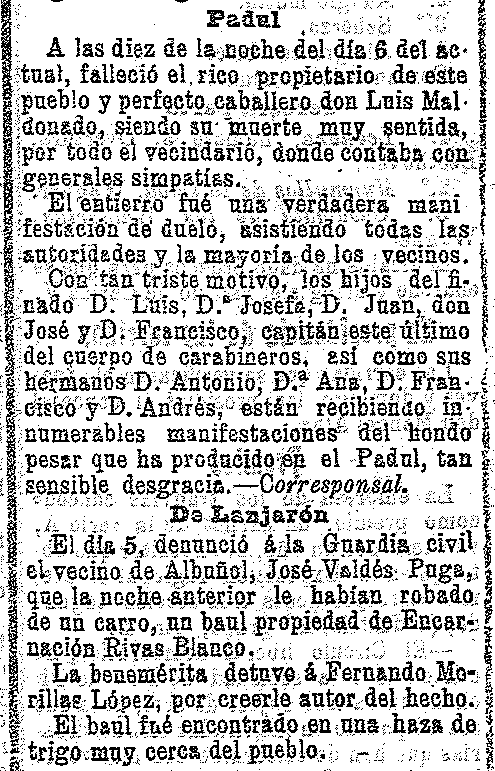 9 de junio de 1909. Fallece el propietario Don Luís Maldonado