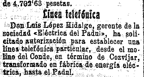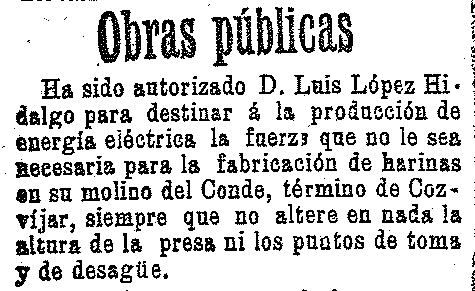 14 de mayo de 1909. El Molino del Conde de Cozvíjar solicita