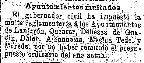 15 de mayo de 1909. Lanjarón y Albuñuelas multados