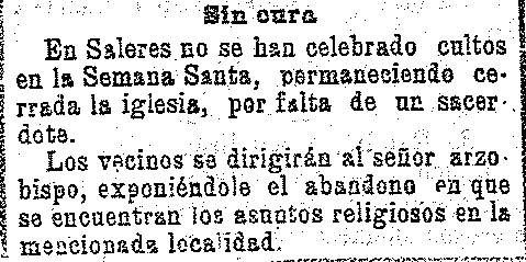 1 de mayo de 1909. Saleres sin cura en Semana Santa