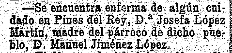 20 de mayo de 1909. La madre del párroco de Pinos del rey