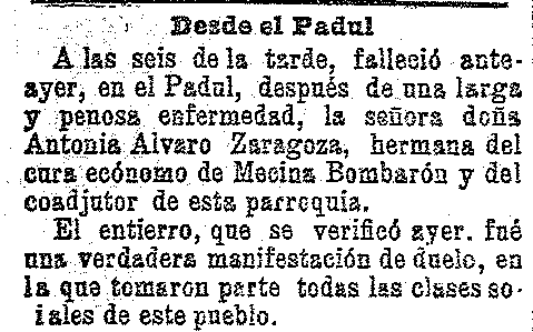 21 de mayo de 1909. Muere en Padul la hermana del cura