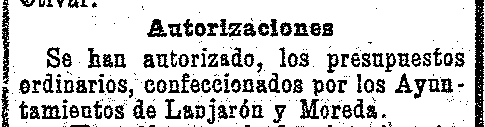 29 de mayo de 1909. Presupuestos de Lanjarón
