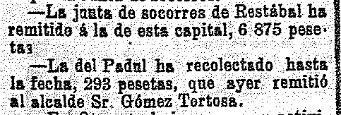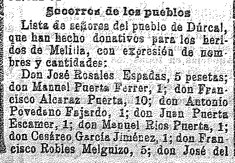 5 de septiembre de 1909. Recaudación en Dúrcal para la guerra