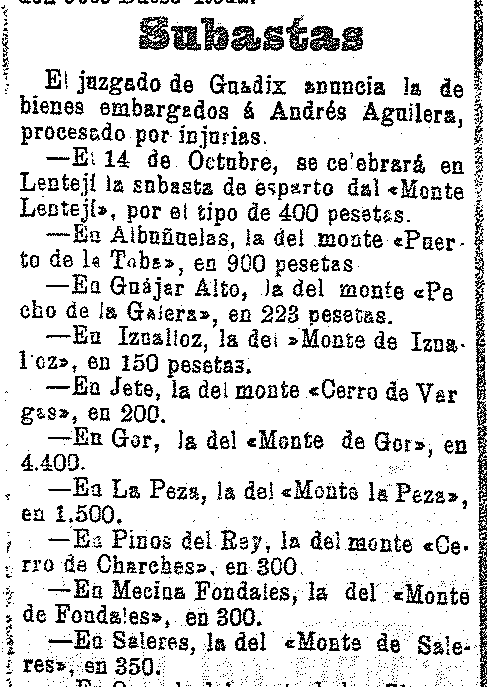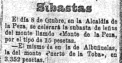 10 de septiembre de 1909. Subastas del Monte de la Toba en