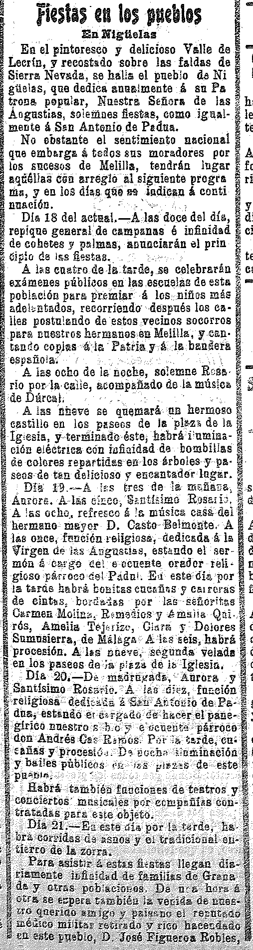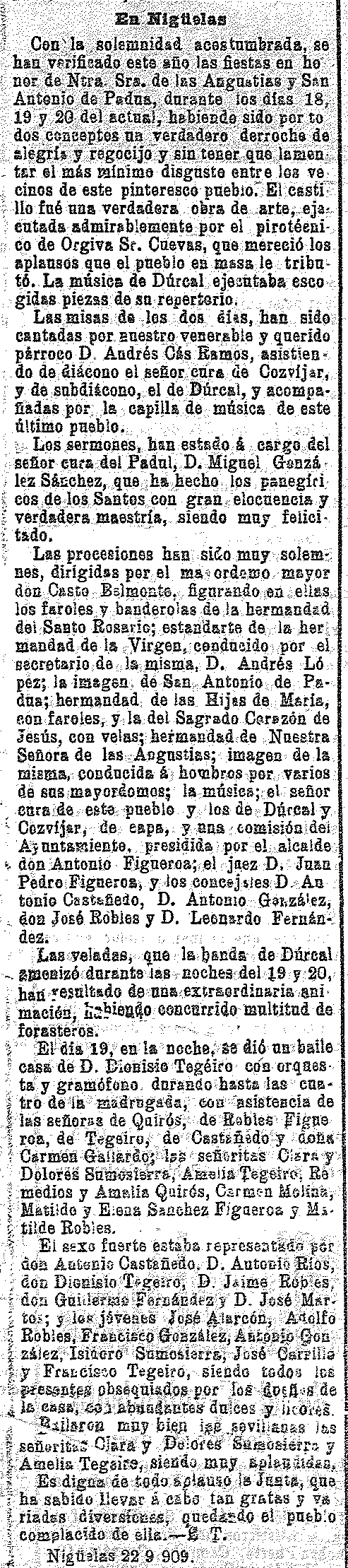 17 de septiembre de 1909. Fiestas de las Angustias en