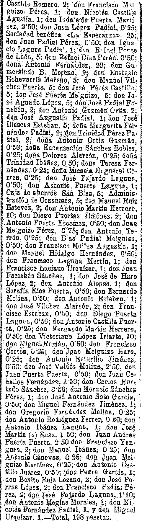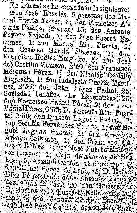 17 de septiembre de 1909. Recaudación en Dúrcal para la