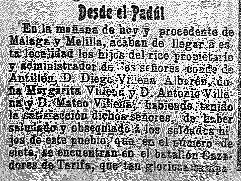 29 de septiembre de 1909. Llegan a Padul los hijos del rico