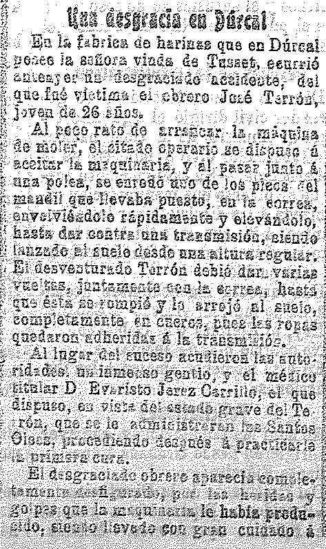 30 de septiembre de 1909. Desgracia en Dúrcal en la fábrica