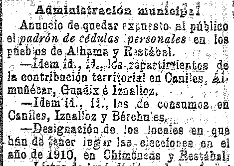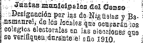 21 de enero de 1910. Locales para elecciones en Nigüelas