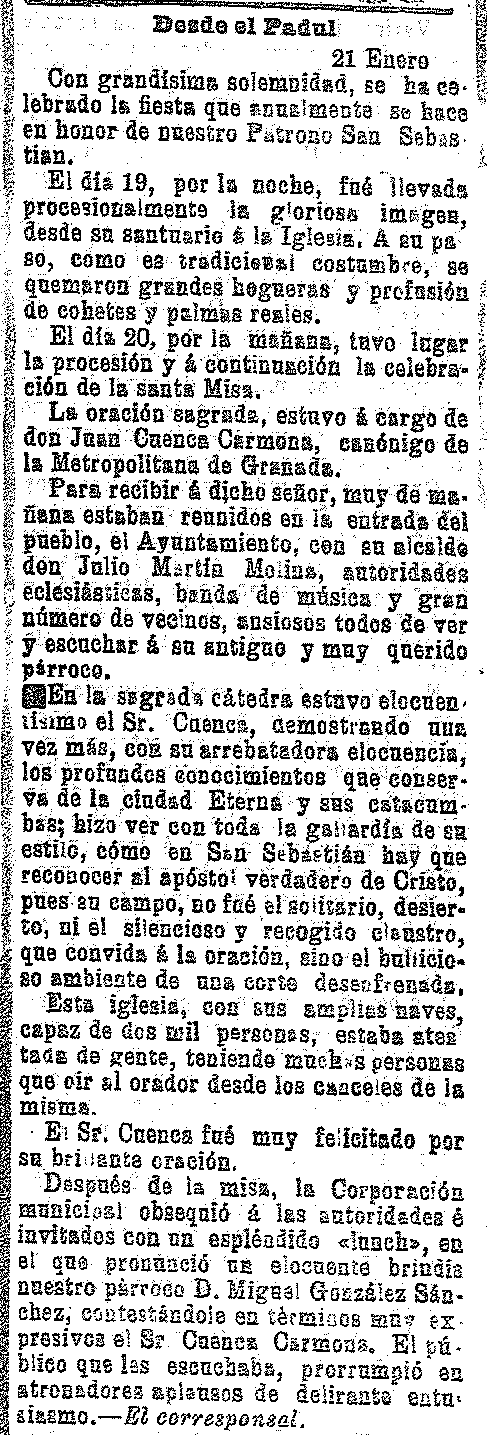 25 de enero de 1910. Fiesta de san Sebastián en Padul
